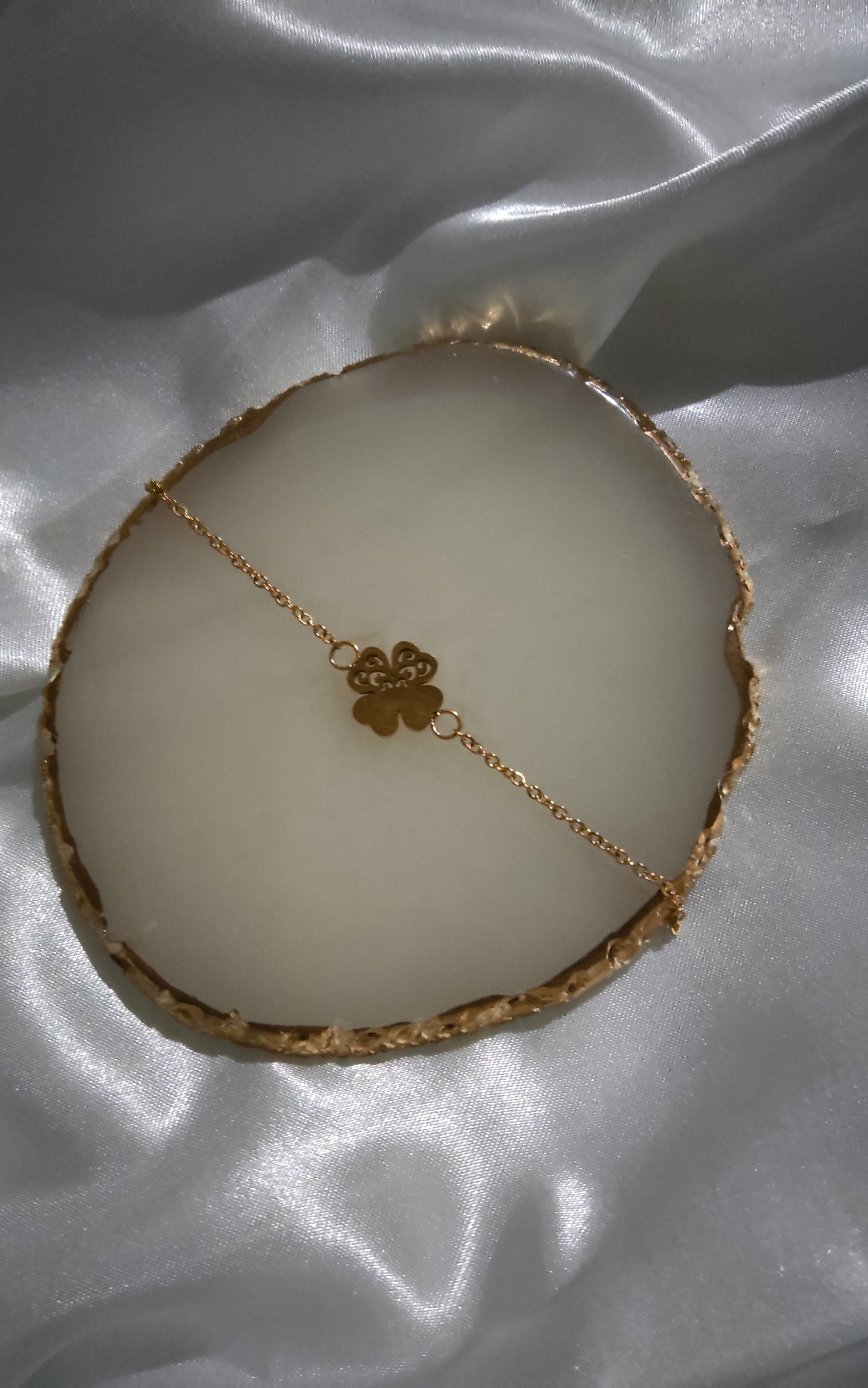 Delicado e cheio de significado, esta pulseira de trevo de quatro folhas, símbolo universal da sorte. O diferencial está no seu design único: metade do trevo possui um acabamento liso e polido, enquanto a outra metade exibe um elegante trabalho rendilhado, conferindo leveza, sofisticação e um toque artístico à peça. Ideal para carregar por perto um amuleto cheio de estilo.