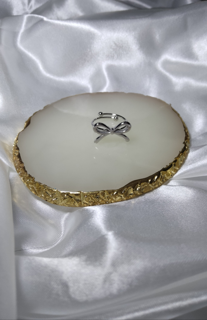 Delicado e moderno, este anel com um laço prateado o é perfeito para quem busca elegância sutil e contemporânea. O seu design minimalista destaca o brilho suave do metal, tornando-o uma peça versátil para o uso diário ou para complementar outras joias com estilo refinado. Um toque discreto que valoriza qualquer look com muita classe.